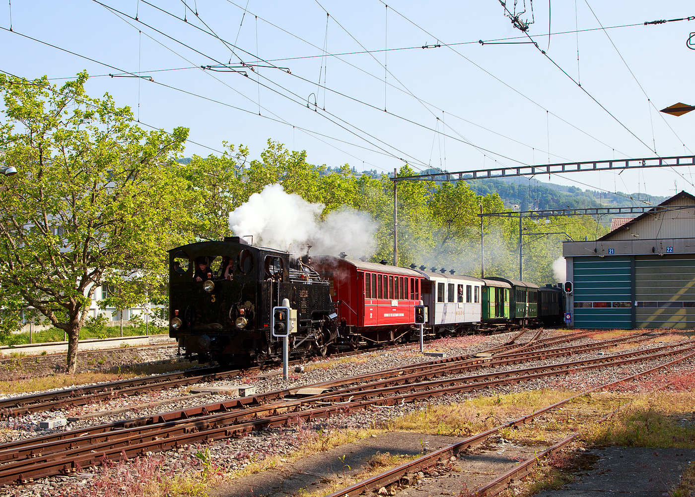 In Aigle (Waadt) gibt es gleich drei Schmalspurbahnen, die seit 1999 in die Transports Publics du Chablais (TPC) fusioniert worden sind, so machten wir auf unserer Rückreise hier mal einen kurzen Zwischenhalt. Die Schmalspurbahnen sind die Aigle–Ollon–Monthey–Champéry-Bahn (AOMC), die Aigle–Sépey–Diablerets-Bahn (ASD), seit dem 22. Dezember 1913 und die Aigle–Leysin-Bahn (AL).